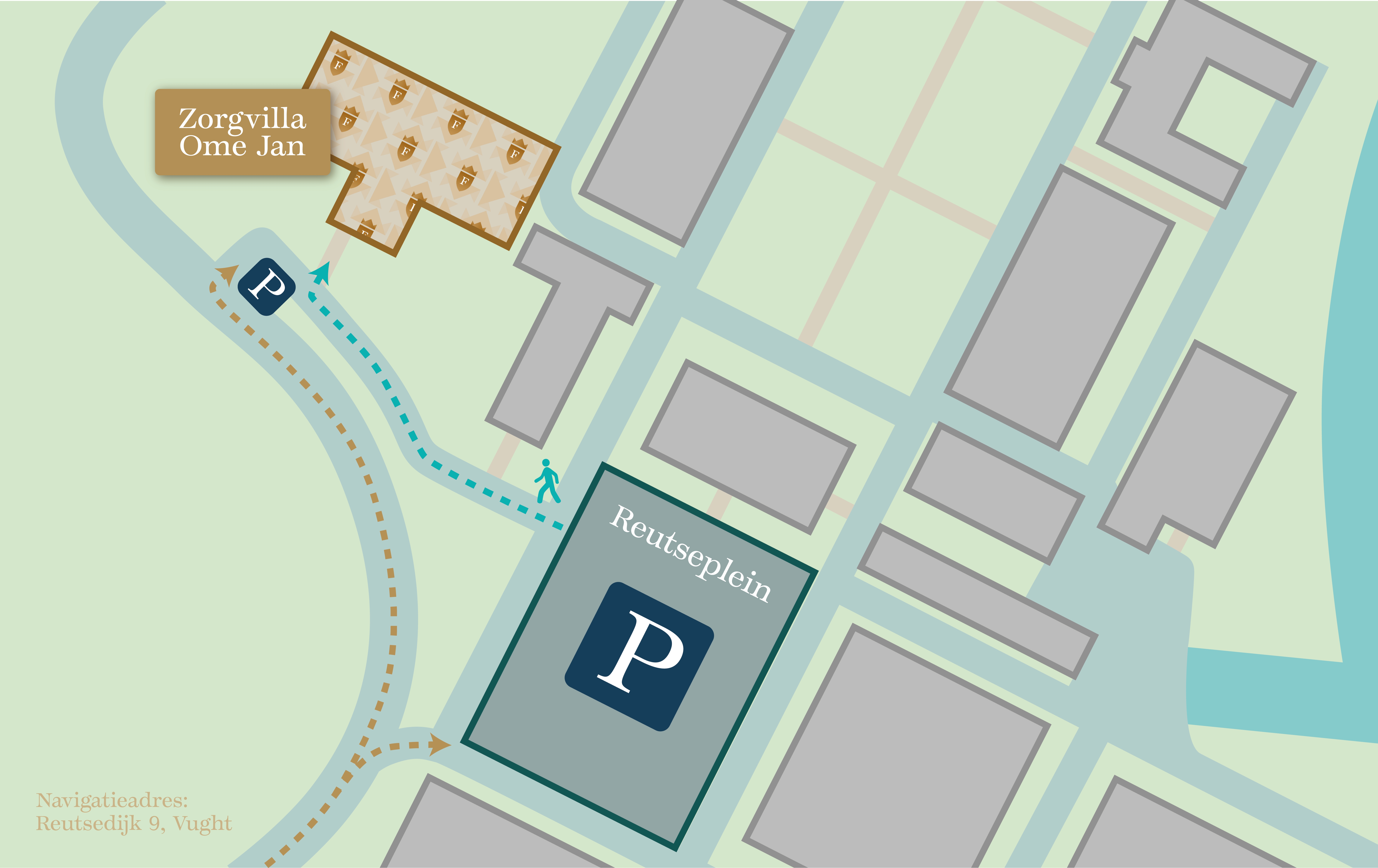 Parkeren kan op het Reutseplein of bij de ingang van zorgvilla Ome Jan. Bekijk hier de plattegrond.